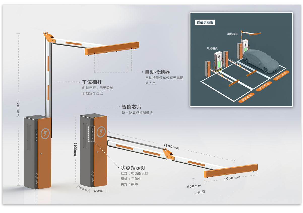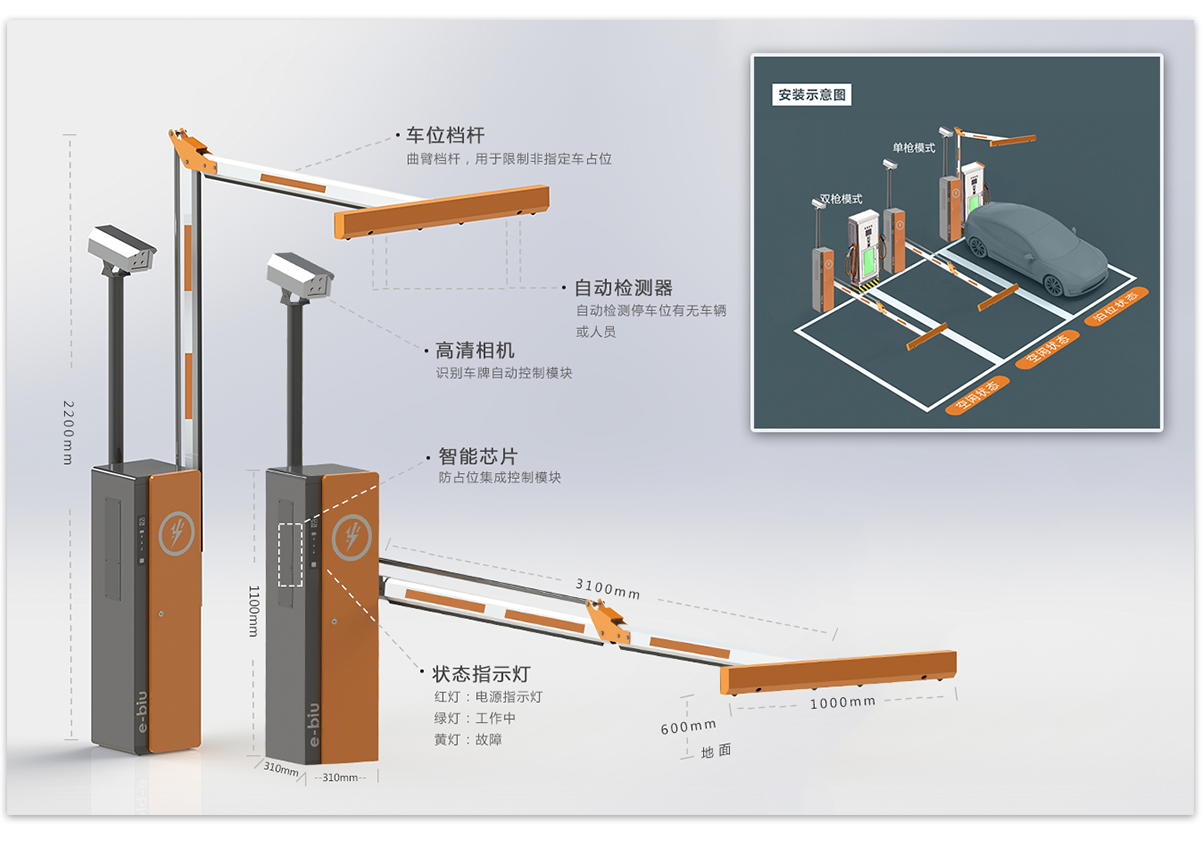 一步位来适用于非封闭场地内的机动车车位无 人值守管理,是全新第三代智能停车物联网产品